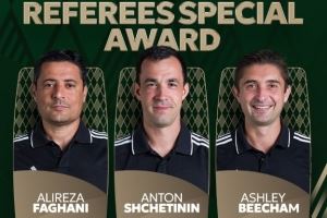 亚足联年度颁奖典礼今天凌晨进行,亚足联官方在社媒写道:祝贺法加尼、谢季宁以及比彻姆获得亚足联裁判特别奖,以表彰他们作为裁判的出色表现!