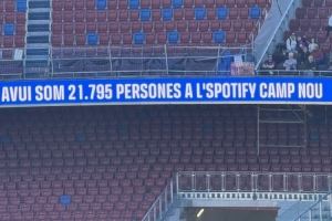 此前巴萨官方确认,诺坎普训练门票已售罄,今日共有21795名球迷入场观看巴萨的训练。